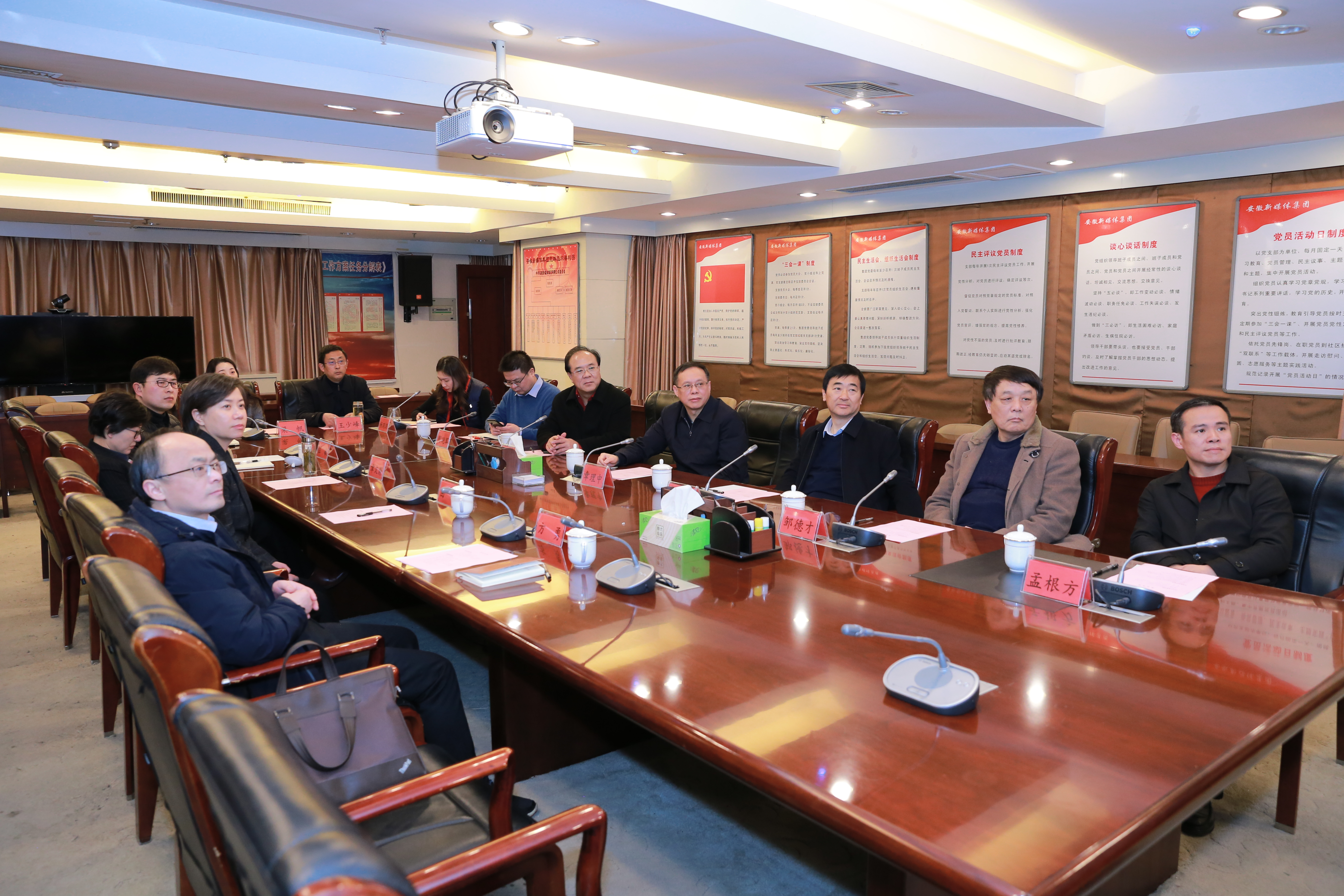 2月24日,池州市委副書(shū)記、宣傳部部長(zhǎng)田昕,市委宣傳部常務(wù)副部長(zhǎng)、二級(jí)巡視員章文靜,市委宣傳部副部長(zhǎng)、市委網(wǎng)信辦主任方勇等一行赴安徽新媒體集團(tuán)走訪調(diào)研。集團(tuán)黨委書(shū)記、董事長(zhǎng)、總經(jīng)理章理中,黨委副書(shū)記周林立,集團(tuán)黨委委員、副總經(jīng)理陳鵬運(yùn)等陪同調(diào)研或參加座談。